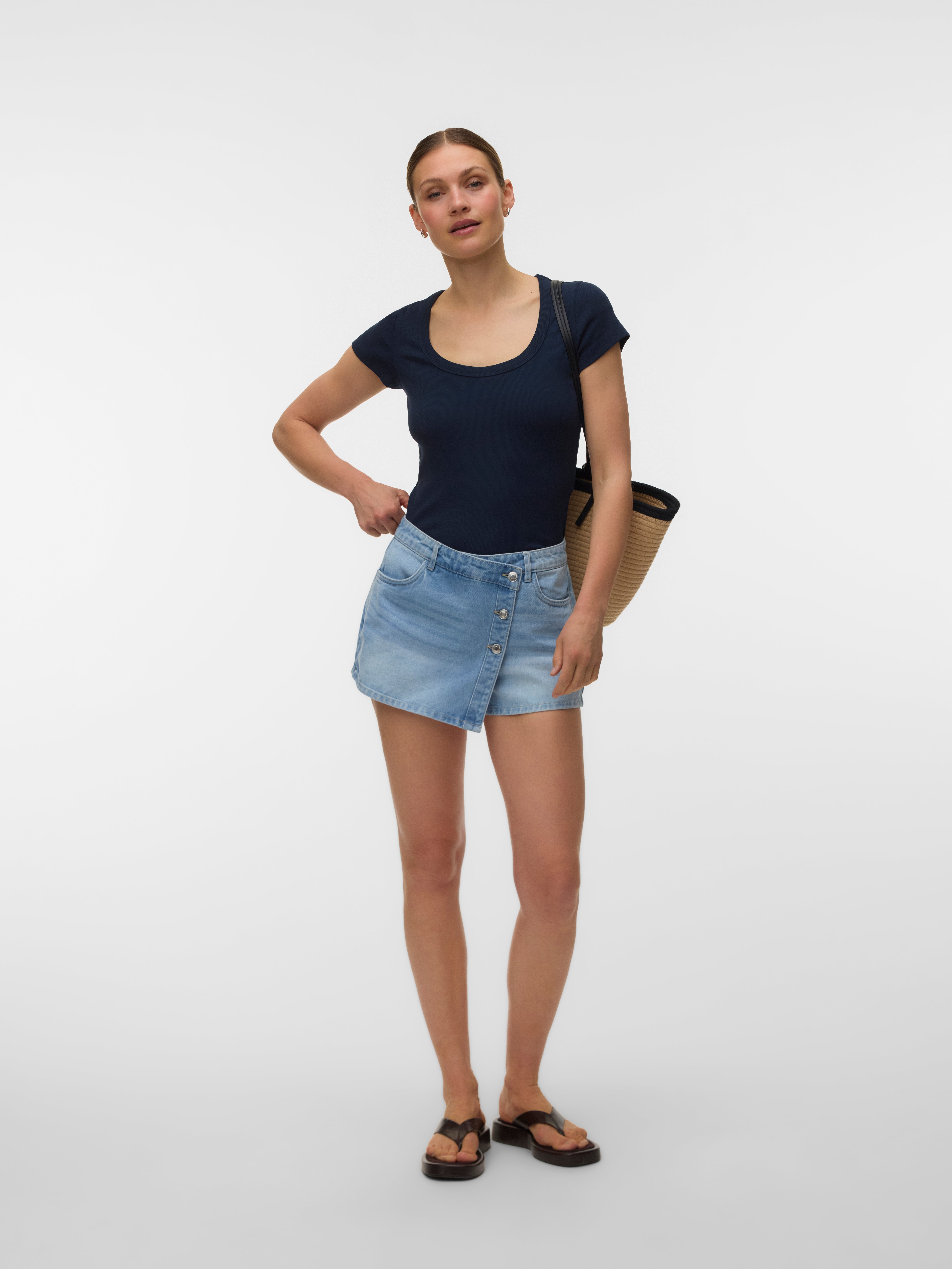Денимът винаги е добра идея, също и когато става въпрос за поли. Истинска класика, която можете да оформите за ежедневна употреба по какъвто и да е начин. За забавна визия - съчетайте го с дънково яке и ето го!.