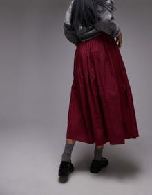 Topshop crinkle cotton laundered full skirt in burgundy - LBLUE