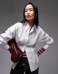 Topshop waisted poplin shirt in white - WHITE