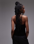 Topshop rib halter top in black - BLACK
