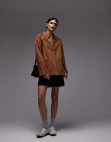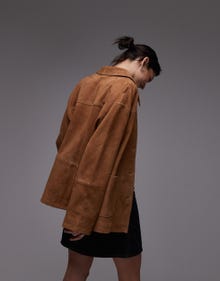 Topshop premium real suede patch pocket boxy jacket in tan - TAN