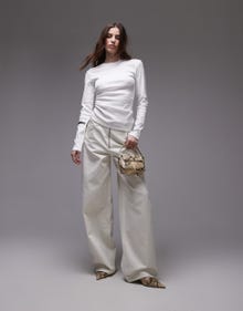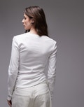 Topshop hitched side long sleeve top in ivory - IVORY