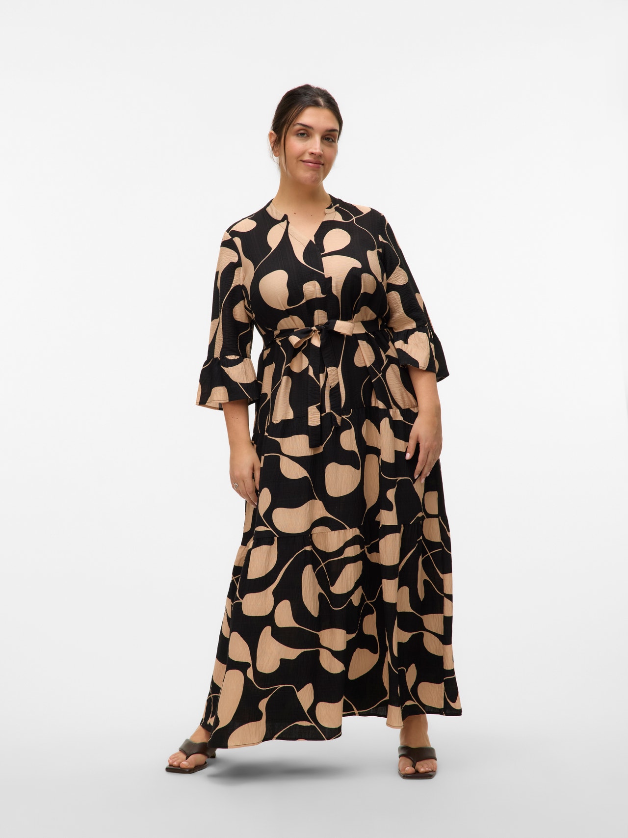 Ova haljina je savršen izbor u danima, gde se sastavljanje odeće čini nemogućim. Kombinacija komfora i stila čini ovu haljinu savršenom svakodnevnicom. Stilizujte ga gore ili dole u zavisnosti od vašeg ukusa. Stilovi zakrivljenosti dizajnirani su tako da odgovaraju zakrivljenim ženskim tijelima. - Vrsta proizvoda : Haljina - Vrat : V-izrez - Rukav : 3/4 rukava (3/4) - Dodatni detalji : Pojas uključen - Štampanja : Štampa se ponavlja na celoj površini proizvoda - Fit : Redovno se uklapa
