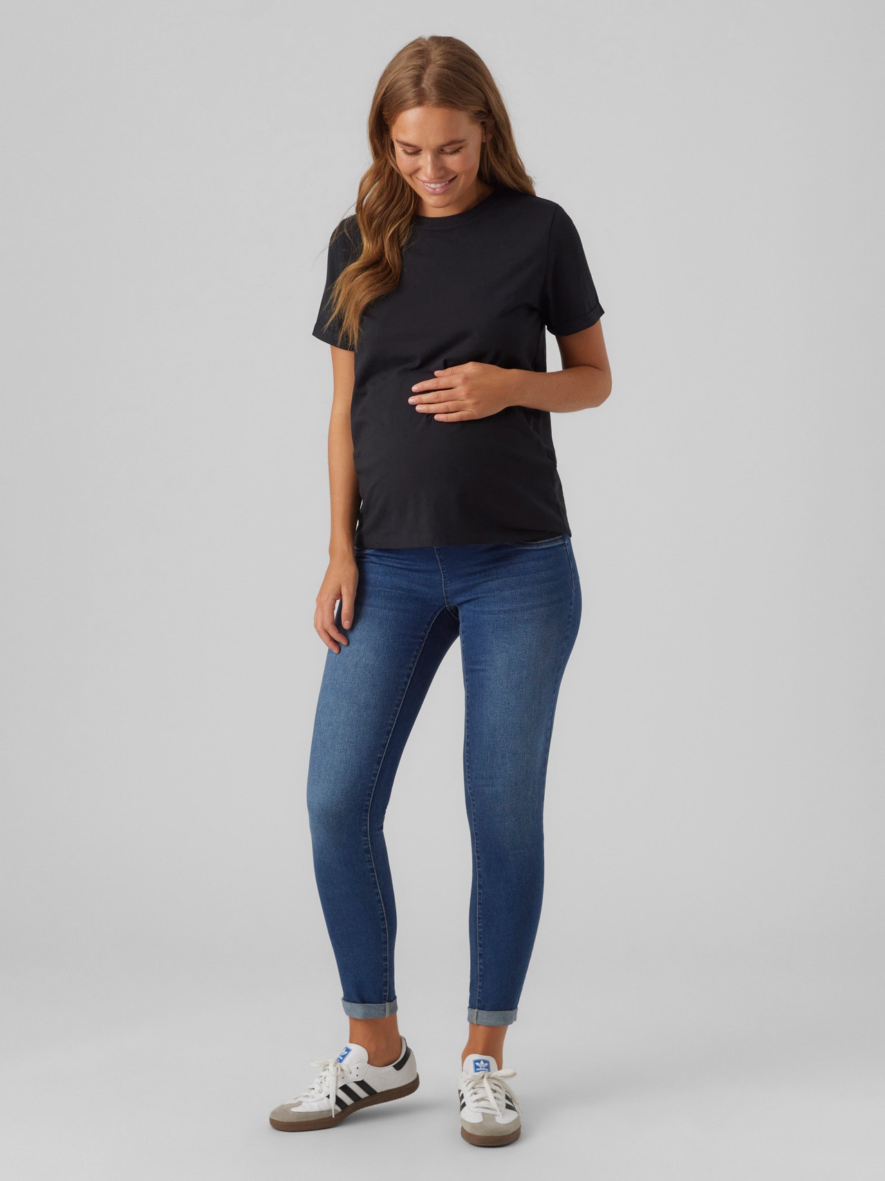 Ostanite hladni u paru porodiljskih farmerki dizajniranih da prođu kroz sve faze trudnoće podržavajući vašu izbočinu elastičnom trakom za kvrgu.