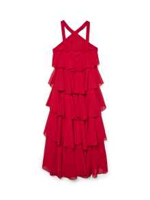 Každý večírek si zaslouží ty správné společenské šaty. Tyto úžasné šaty vás v mžiku dostanou do té správné party-nálady. Doplňte je podpatky a oblíbenými doplňky a získejte slavnostní a velkolepý party-outfit. - Typ výrobku : Párty šaty - Výstřih : Šatový výstřih - Rukáv : Bez rukávů - Zavírání : Zapínání na zip - Délka/velikost : Maxi délka - Extra detaily : Volánky, Otevřená záda - Střih : Regular Fit