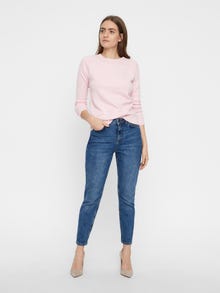 - Knitted pullover with rounded hem. - Relaxed fit. - Soft and stretchy knit material. - Rib details at the neckline, hem and cuffs. - Length: 62 cm in a size S. - The model is 177 cm tall and wears a size S. Knitted pullover with rounded hem and rib details at the neckline, hem and cuffs. The pullover goes perfectly with a pair of jeans.