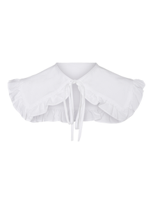 Collar with fringe and string details. The collar is made from a soft and light material. Style it with a knit for a trendy look.