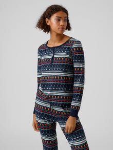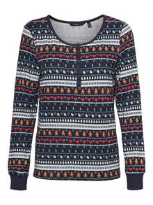 Long-sleeve jersey top in Christmas print with a round neckline and a button detail in the front. Wear it with a pair of jeans and a cool vest for a perfect winter look.