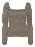 LDS JRS L/S TOP WITH SMOCK ON SLEEVES AND BODY WITH SQUARE NECKLINE