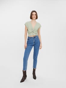 Den ultimative sommer-musthave! Denne croptop vil nemt gøre dine jeans, nederdele og shorts til et perfekt sommer-outfit. Toppen vil vise din skønne figur frem, være flot med højtaljede underdele og helt klart gøre underværker for dit look. - Produkttype : Top - Hals : V-hals - Ærme : Extra korte ærmer - Længde/størrelse : Cropped - Pasform : Regular fit