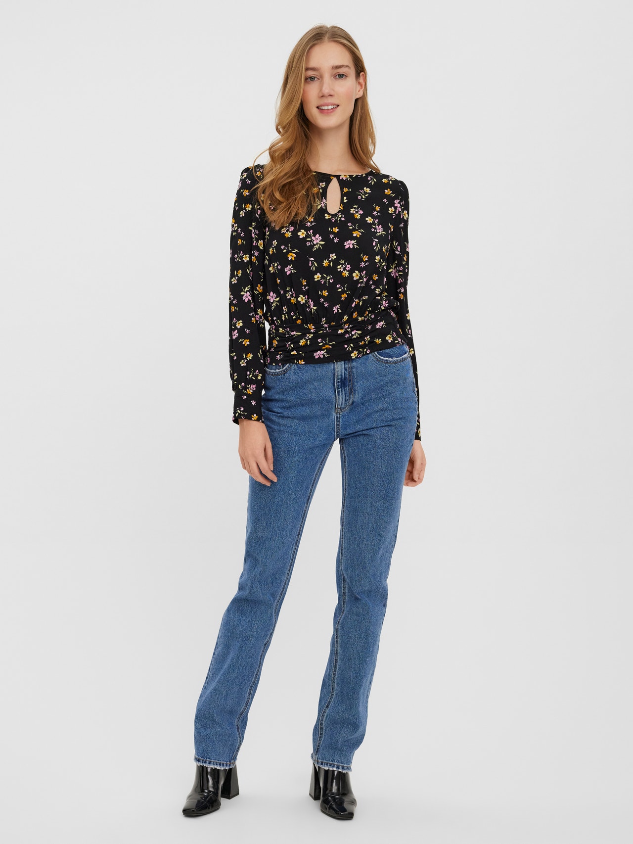 LDS, LONG SLEEVE KEY HOLE TOP, WOVEN