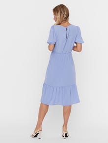 Long dress with a round neckline, a keyhole closure in the back, an elastic waistline, and a cutline at the skirt. Style this beautiful dress with some heeled sandals and your favourite accessories for a beautiful occasion look