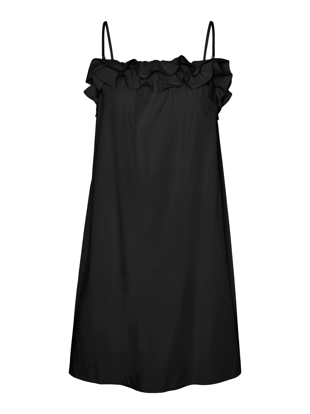 Mini dress with a square neckline, adjustable straps, and frills by the neckline. Style this stunning dress with a pair of cowboy boots and some statement jewellery for a stylish look.