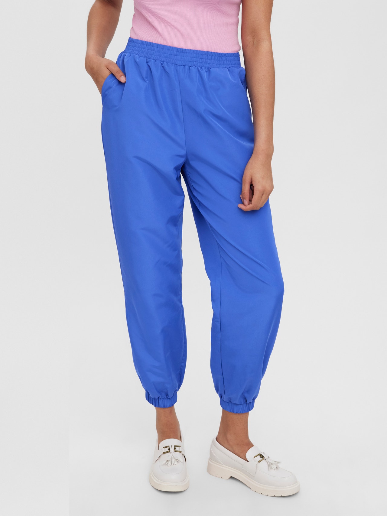 Loose trousers with an elastic waist, loose fit, and elastic at the leg openings. Style these cool trousers with a tight top and an oversized blazer for a cool everyday look. Add a pair of heels for a night out.