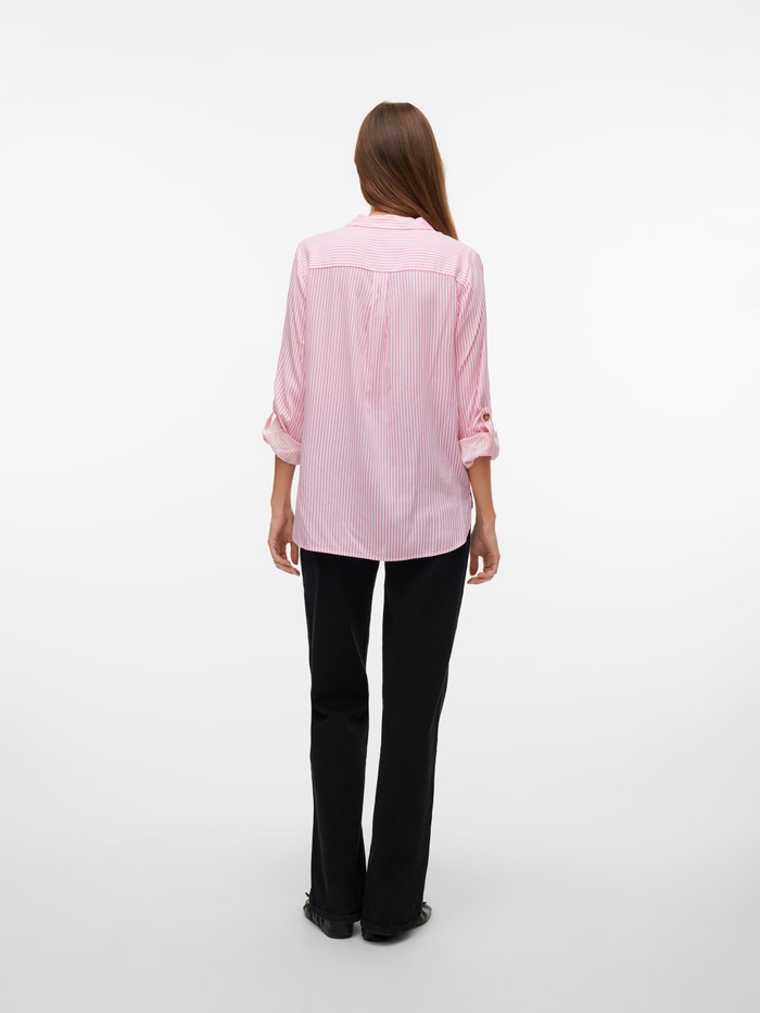 Denne skjorte er en chik og alsidig tilføjelse til din garderobe, da den kan bæres alene såvel som åben med en simpel top under. Brug den med klassiske jeans og en simpel T-shirt for at få et cool hverdagslook, eller gør den finere med et par bukser og højhælede.