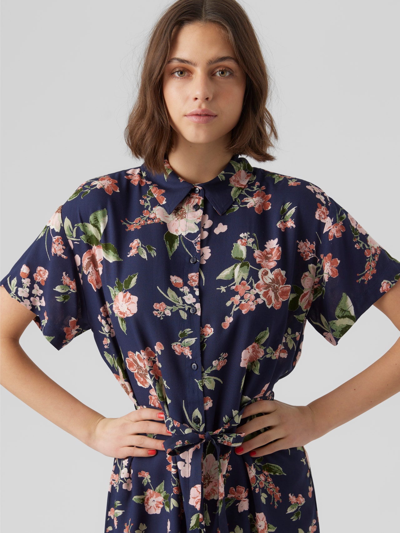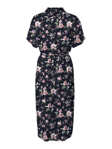 En skjortekjole er både alsidig og stilrigtig. Stilen er et musthave i garderoben. Brug den, som den er eller med et par jeans. Føj et bælte til i taljen for at fremhæve din figur. Denne skjortekjole har uendelige styling-muligheder og er perfekt til dage, hvor du ikke ved, hvad du skal tage på. - Produkttype : Skjortekjole - Hals : Skjortekrave - Ærme : Korte ærmer - Ærmer : Brede ærmer - Lukning : Knaplukning - Detaljer : Bælte i taljen - Pasform : Regular fit