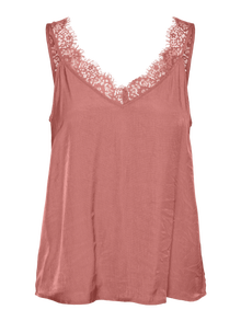 Basisvarer vil uundgåeligt findes i enhver garderobe. Vores basistoppe hjælper med at binde et outfit sammen, og denne top er ingen undtagelse. Brug den med en skjortejakke over, et par afslappede mom-jeans og chunky støvler, og du har et afslappet og cool hverdagslook. - Produkttype : Singlet - Hals : V-hals - Ærme : Ærmeløs - Længde/størrelse : Normal længde - Detaljer : Feminin blondedetalje - Pasform : Regular fit