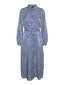 En blå og hvid stribet midikjole i et regular fit. Kjolen har en klassisk skjortekrave og lange pufærmer med knaplukning ved manchetterne. Designet fuldendes af en gennemgående knaplukning foran og et bindebånd i taljen, der giver mulighed for at justere pasformen. Kjolen er lavet i en glat satinkvalitet.