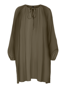 Denne kjole er det perfekte valg til de dage, hvor det virker umuligt at sætte et outfit sammen. Kombinationen af komfort og stil gør denne kjole til en perfekt hverdags-go-to. Gør den finere eller mere afslapper afhængigt af din smag. - Produkttype : Tunika - Hals : V-hals - Ærme : Lange ærmer - Ærmer : Volumenærmer - Manchetter : Elastiske manchetter - Lukning : Bindebåndslukning - Længde/størrelse : Over knæet - Print : Printet på hele produktets overflade - Pasform : Regular fit