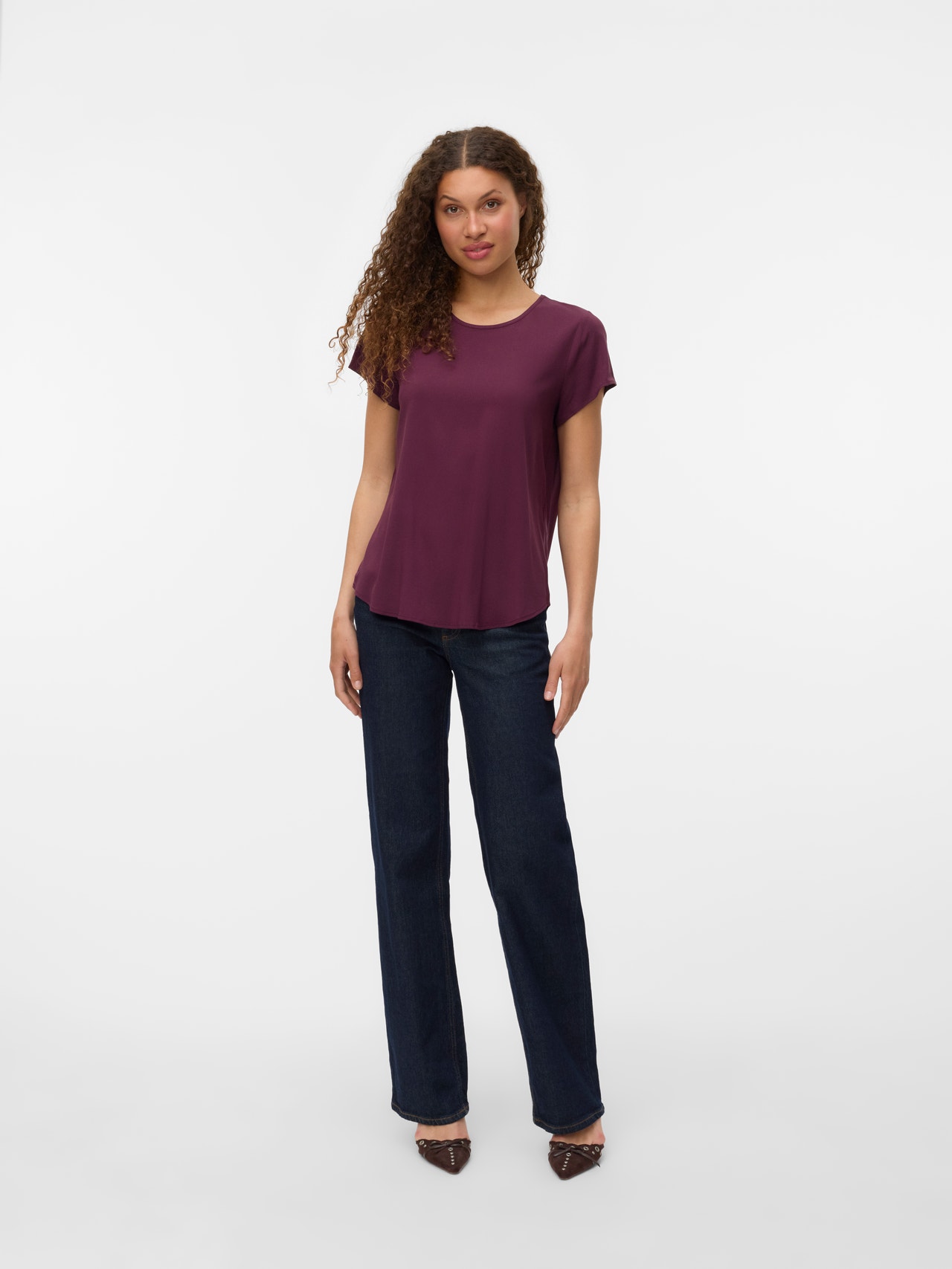 Basisvarer vil uundgåeligt findes i enhver garderobe. Vores basistoppe hjælper med at binde et outfit sammen, og denne top er ingen undtagelse. Brug den med en skjortejakke over, et par afslappede mom-jeans og chunky støvler, og du har et afslappet og cool hverdagslook. - Produkttype : Bluse - Hals : O-hals - Ærme : Korte ærmer - Pasform : Standard fit