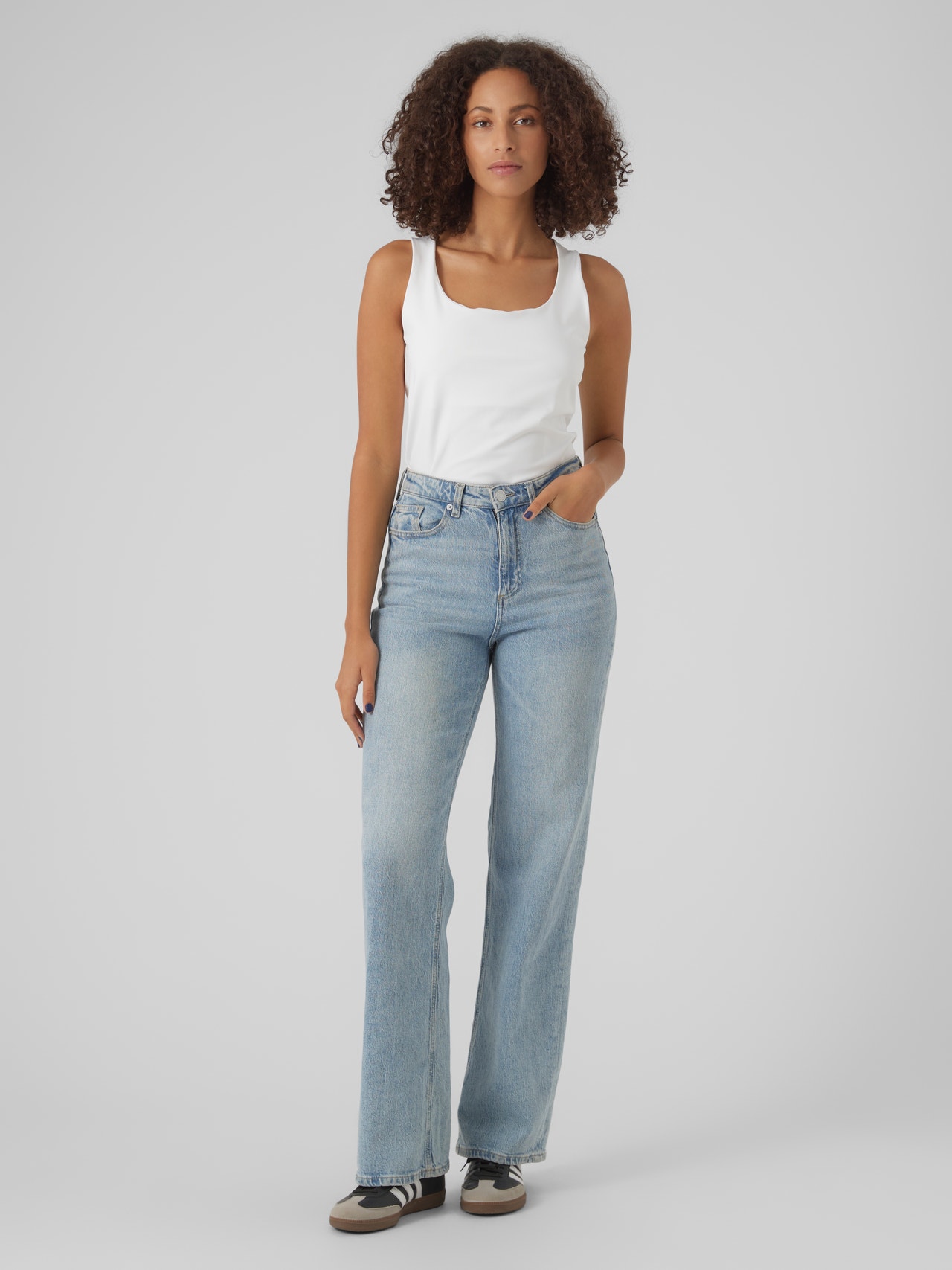 Basisvarer vil uundgåeligt findes i enhver garderobe. Vores basistoppe hjælper med at binde et outfit sammen, og denne top er ingen undtagelse. Brug den med en skjortejakke over, et par afslappede mom-jeans og chunky støvler, og du har et afslappet og cool hverdagslook.