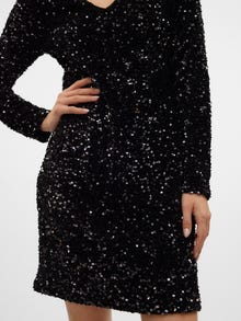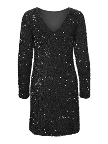 Hver en fest fortjener den helt rette festkjole. Denne skønne kjole vil få dig i den rette feststemning på ingen tid. Brug den med et par højhælede og dine yndlingsaccessories for at få et festligt og spektakulært festlook. - Produkttype : Festkjole - Hals : O-hals - Ærme : Lange ærmer - Længde/størrelse : Kort - For : Polyesterfor for et ikke-transparent look - Detaljer : Kan bruges bagvendt, Pailletter - Pasform : Slim fit