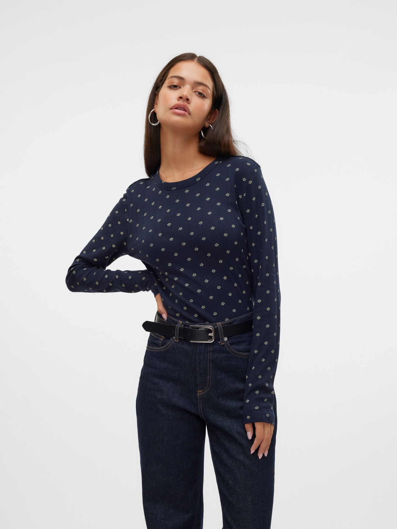 Basisvarer vil uundgåeligt findes i enhver garderobe. Vores basistoppe hjælper med at binde et outfit sammen, og denne top er ingen undtagelse. Brug den med en skjortejakke over, et par afslappede mom-jeans og chunky støvler, og du har et afslappet og cool hverdagslook.
