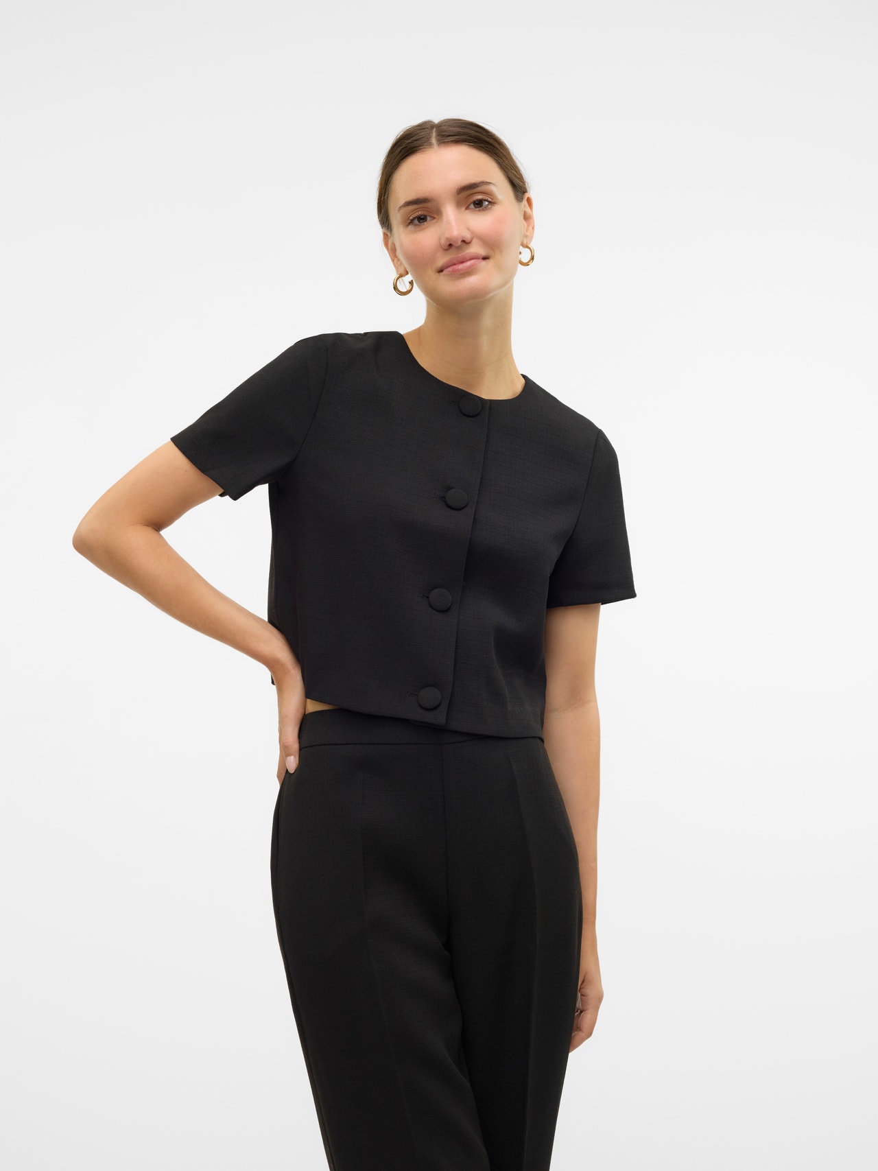 - Ærme : Korte ærmer
