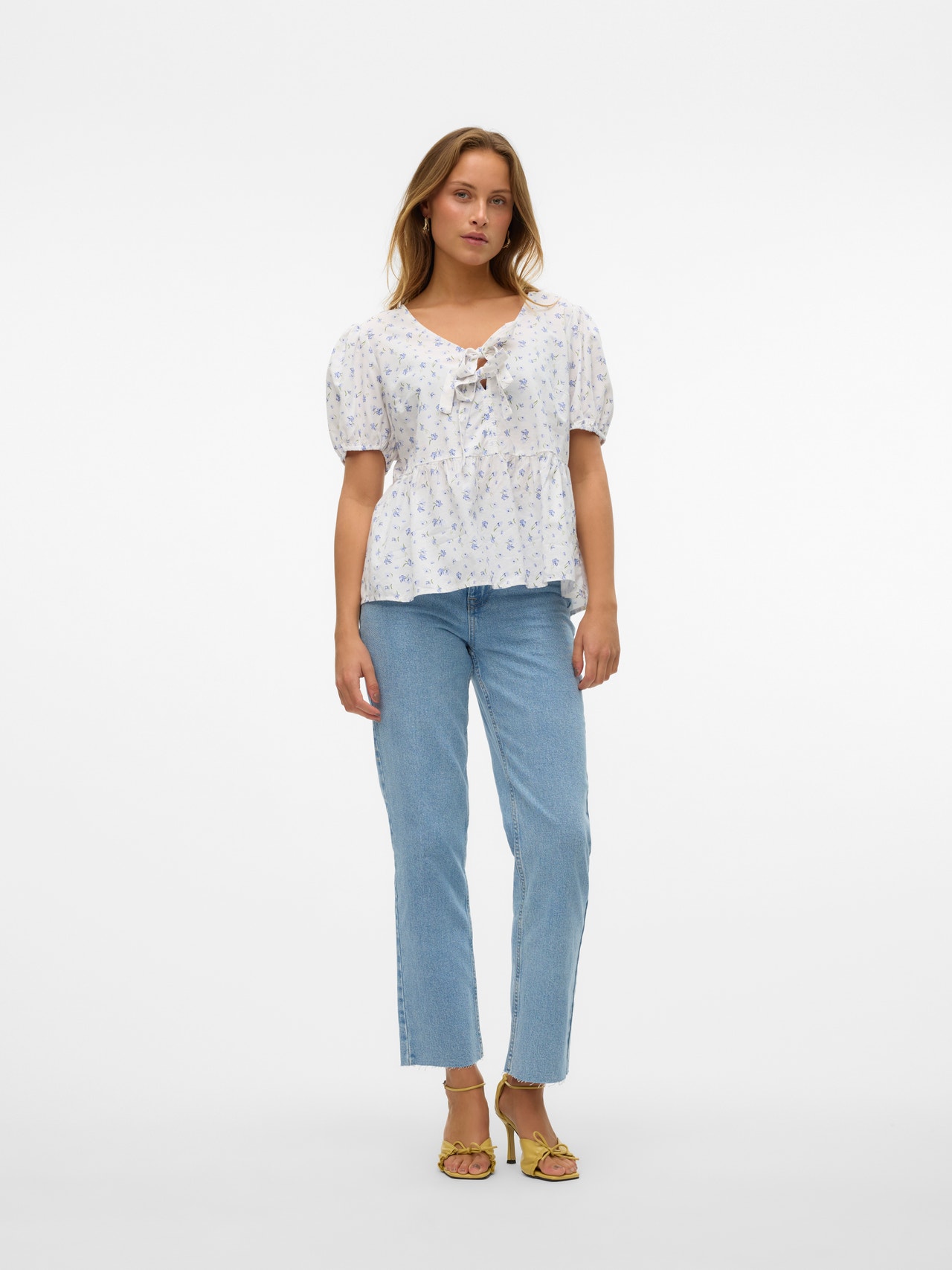 Leder du efter en ny favorittop til hverdag? Vi har en ide. Denne top vil let blive en ny go-to på dage, hvor du ikke er i humør til noget vildt, men stadig gerne vil se trendy ud. Brug den med nogle smykker for at få lidt ekstra glans, eller hold det simpelt med en let jakke.. - Produkttype : Top - Hals : Firkantet hals - Ærme : Korte ærmer - Ærmer : Ballonærmer - Lukning : Lukning med bindebånd - Detaljer : Knudedetalje - Pasform : Regular fit