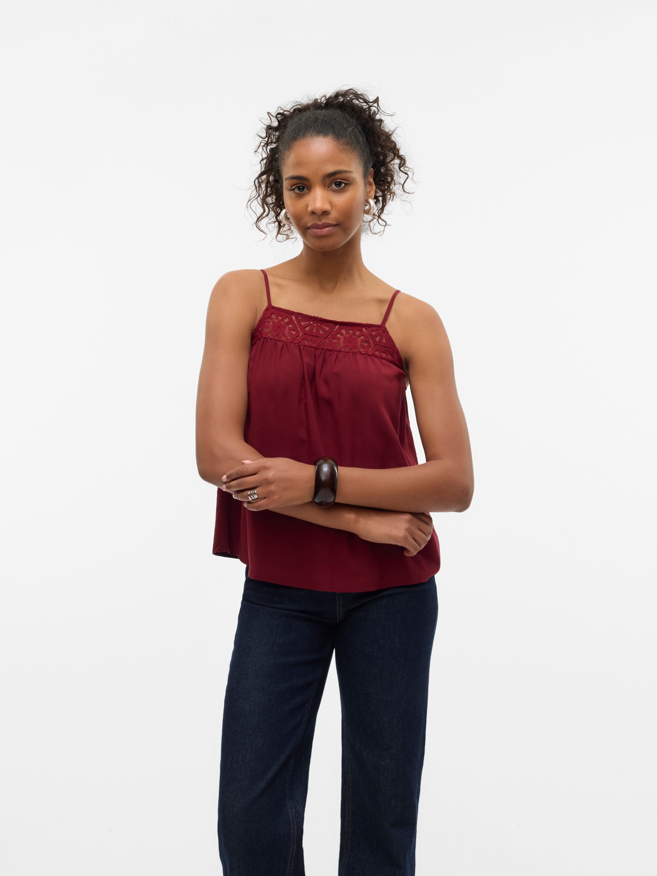 Basisvarer vil uundgåeligt findes i enhver garderobe. Vores basistoppe hjælper med at binde et outfit sammen, og denne top er ingen undtagelse. Brug den med en skjortejakke over, et par afslappede mom-jeans og chunky støvler, og du har et afslappet og cool hverdagslook.