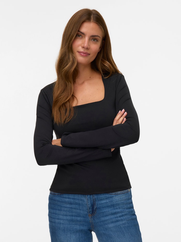 Basisvarer vil uundgåeligt findes i enhver garderobe. Vores basistoppe hjælper med at binde et outfit sammen, og denne top er ingen undtagelse. Brug den med en skjortejakke over, et par afslappede mom-jeans og chunky støvler, og du har et afslappet og cool hverdagslook.