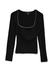 Blusen er den mest alsidige vare i garderobe - den kan bruges med stort set alt fra jeans, og bukser til nederdele osv. Og vores varer er ingen undtagelse. Denne vare vil på ingen tid føje sofistikeret stil til dit look. - Produkttype : Strikket top - Hals : Firkantet hals - Ærme : Lange ærmer - Detaljer : Perler - Pasform : Regular fit - Bemærk : Perlerne/pailletterne/rhinstenene på denne genstand kan falde af under brug. Sørg for at læse vaske- og plejeinstruktionerne omhyggeligt