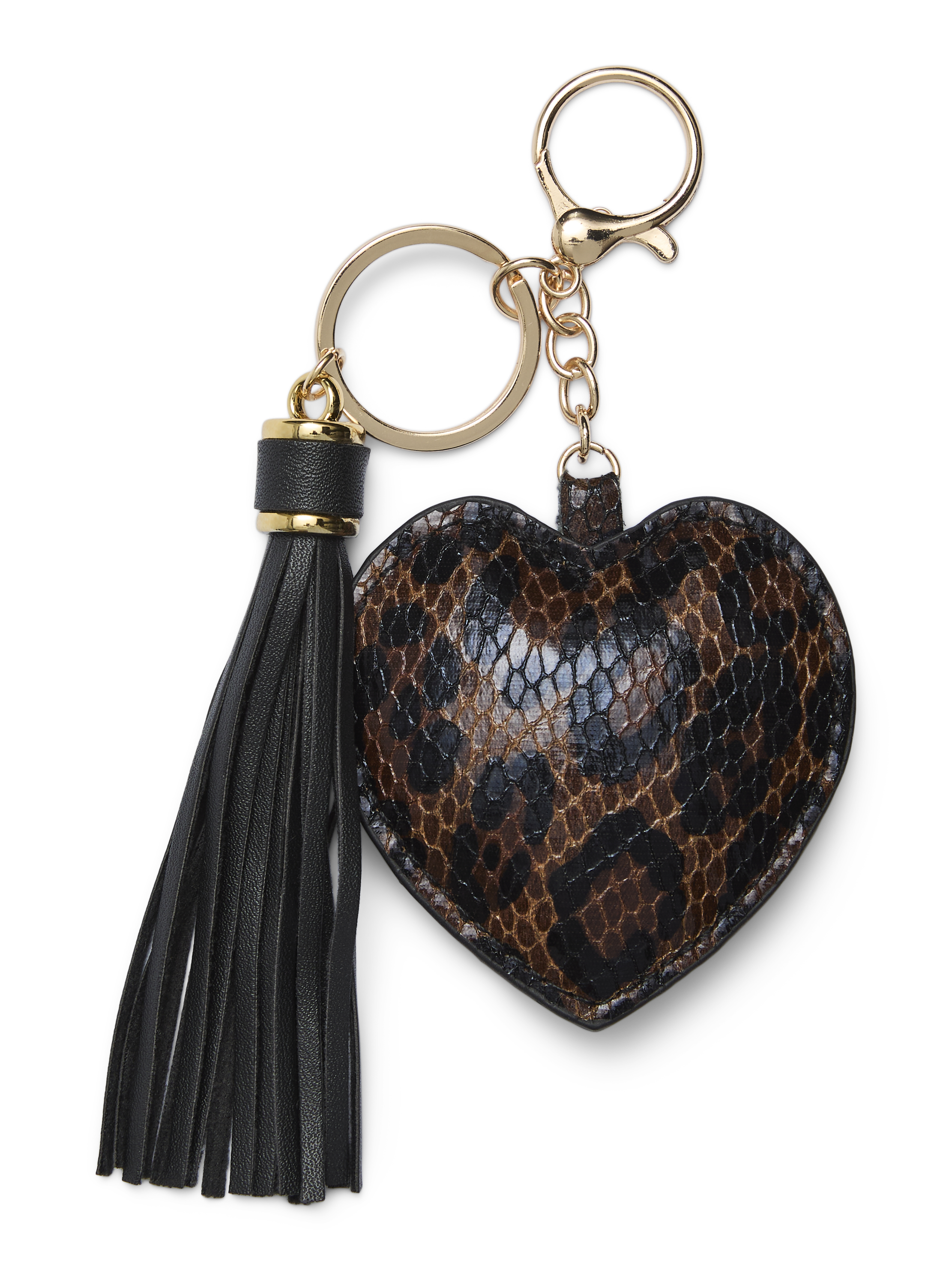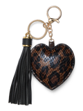 LDS KEYCHAIN W. PU LEOPARD PATTERN HEART AND PU TASSEL DETAIL