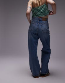 Topshop Petite mid rise loose fit straight jeans in mid blue - MBLUE