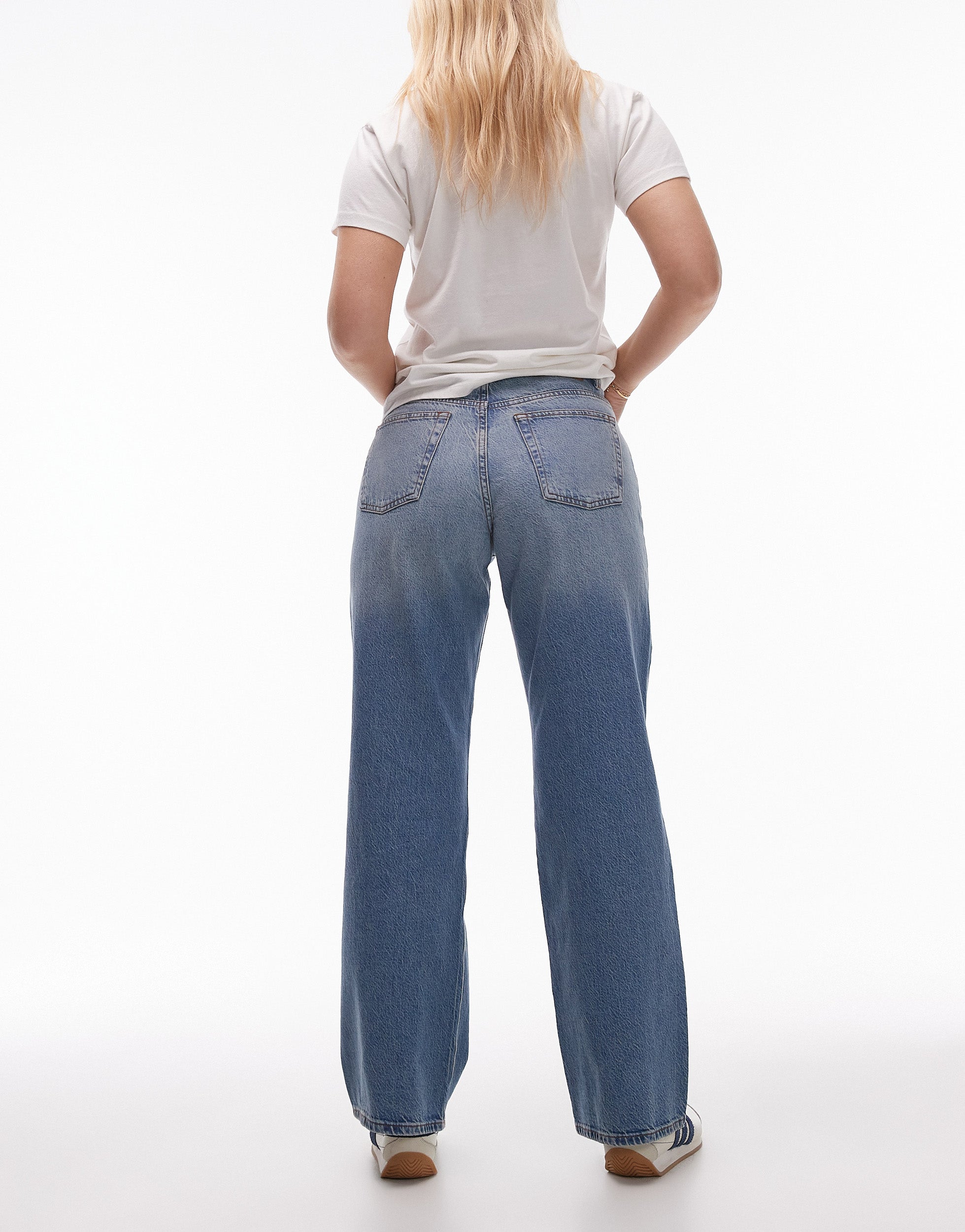 Topshop Hourglass mid rise loose fit straight jean in mid blue - MBLUE