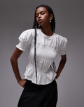 Topshop shirred panel tee in white - WHITE