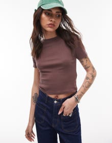 Topshop shrunken everyday tee in new chocolate - BROWN