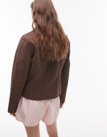 Topshop faux suede zip through jacket in brown - BROWN