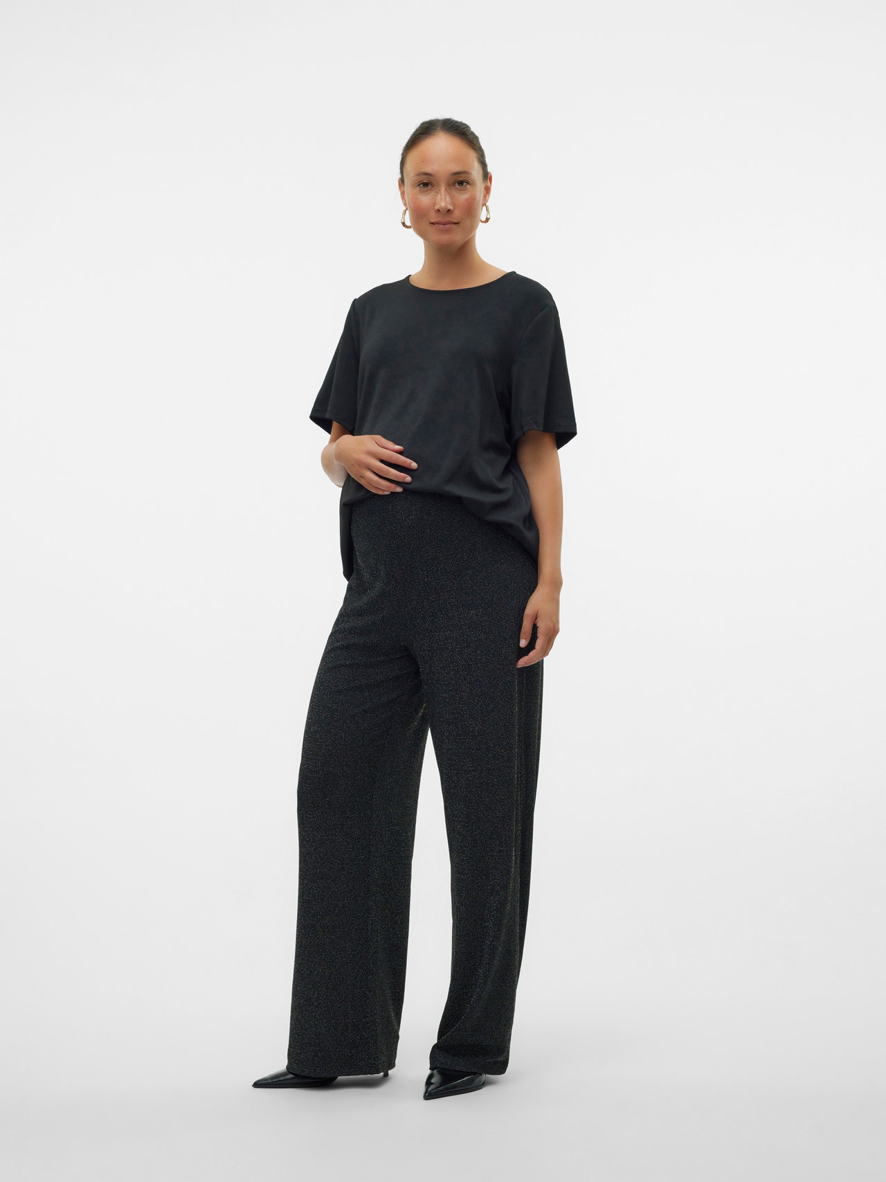 Skab et fantastisk look med festmodeller, der sikrer komfort og elegance, og er perfekt til både små og store fester hele året rundt. - Produkttype : Bukser - Detaljer : Glimmerdetajle, Støttebånd over bulen for ekstra komfort og støtte, Elastisk talje - Pasform : Wide leg fit