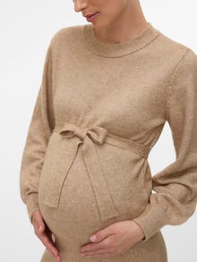 Føj komfort og farve til din garderobe med smukke kjoler, der støtter din babybule og passer til enhver lejlighed, uanset om det er en hverdag eller særlige begivenheder.. - Produkttype : Strikkjole - Hals : O-hals - Ærme : Lange ærmer - Ærmer : Ballonærmer - Manchetter : Manchetter i rib - Længde/størrelse : Maxilængde - Detaljer : Bælte medfølger - Pasform : Regular fit