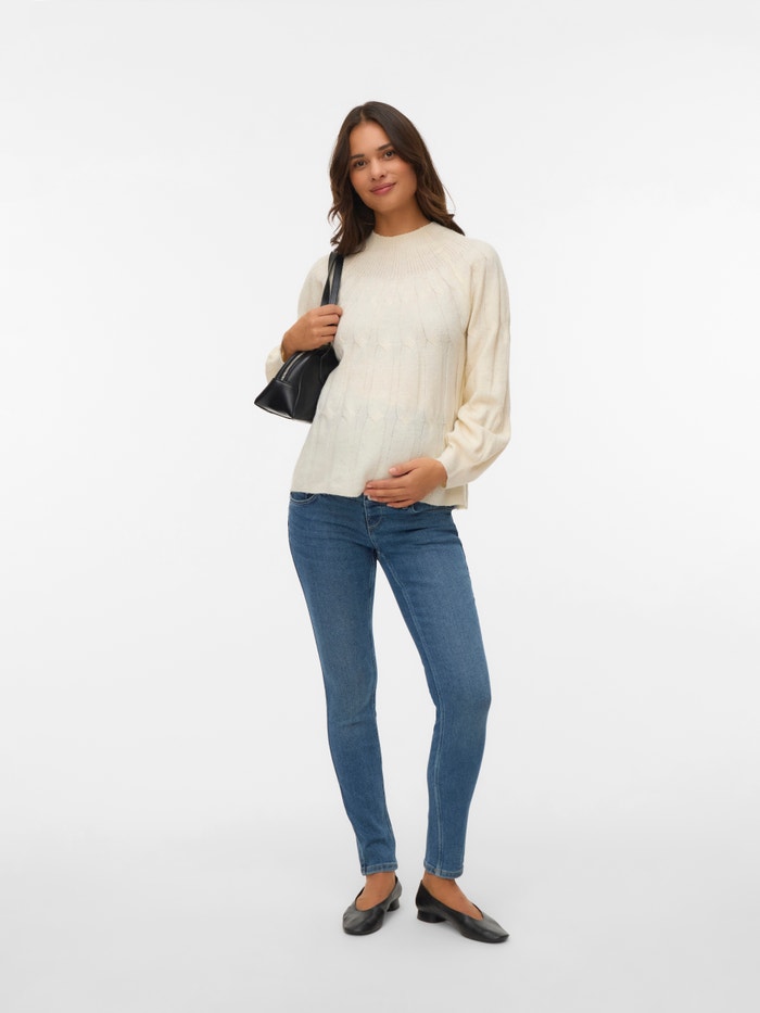 Vær sej i et par graviditetsjeans, der er designet til at passe til alle graviditetstrin og støtte din babybule med et elastisk babybule-bånd.