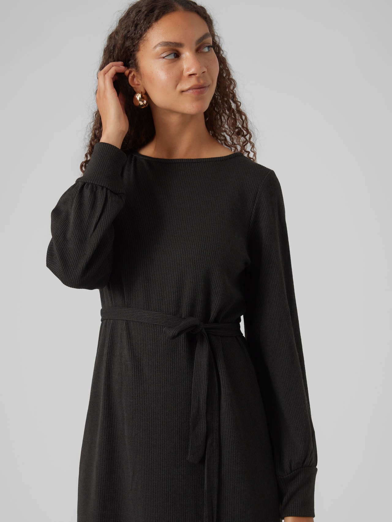Dieses Kleid ist deine Rettung an Tagen, an denen es dir unmöglich scheint, ein Outfit zusammenzustellen. Die Kombination aus Komfort und Stil macht dieses Kleid zum perfekten Begleiter im Alltag. Style es je nach Lust und Laune schicker oder lässiger. - Produkttyp : Kleid - Neck : Rundhals - Ärmel : Langarm - Ärmel : Normale Ärmel - Manschetten : Lange Bündchen - Länge/Größe : Kurz - Details : Gürtel in der Taille - Passform : Normal geschnitten