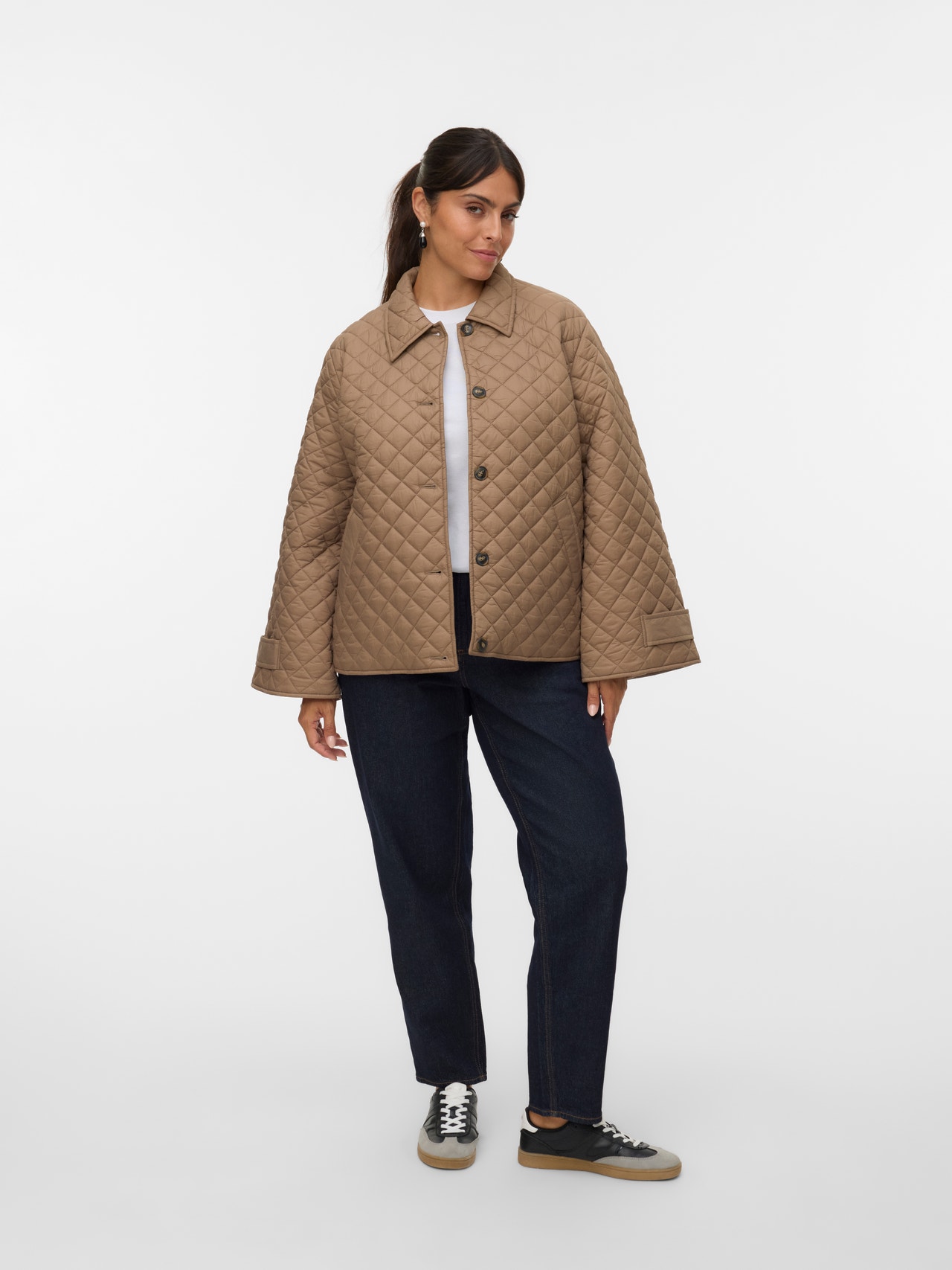 Outerwear kann durchaus beides sein – praktisch und schön. Mit dieser Jacke sorgst du im Handumdrehen für einen schicken Look. Das elegante Design wirkt zeitlos und passt zu allem. Mit einem eleganten Kleid und High Heels gelingt dir ein festlicher Look, der einfach umwerfend ist. Curve-Styles sind so designt, dass sie kurvigen Frauen perfekt passen.. - Produkttyp : Steppjacke - Hals : Fly-Away Kragen - Ärmel : Langarm - Verschluss : Knopfleiste - Taschen : Taschen vorn - Länge/Größe : Kurz - Futter : Gefüttert - Fütterung : Recycelte Polyester-Wattierung für Wärme - Details : Gesteppte Detail - Körperform : Curve