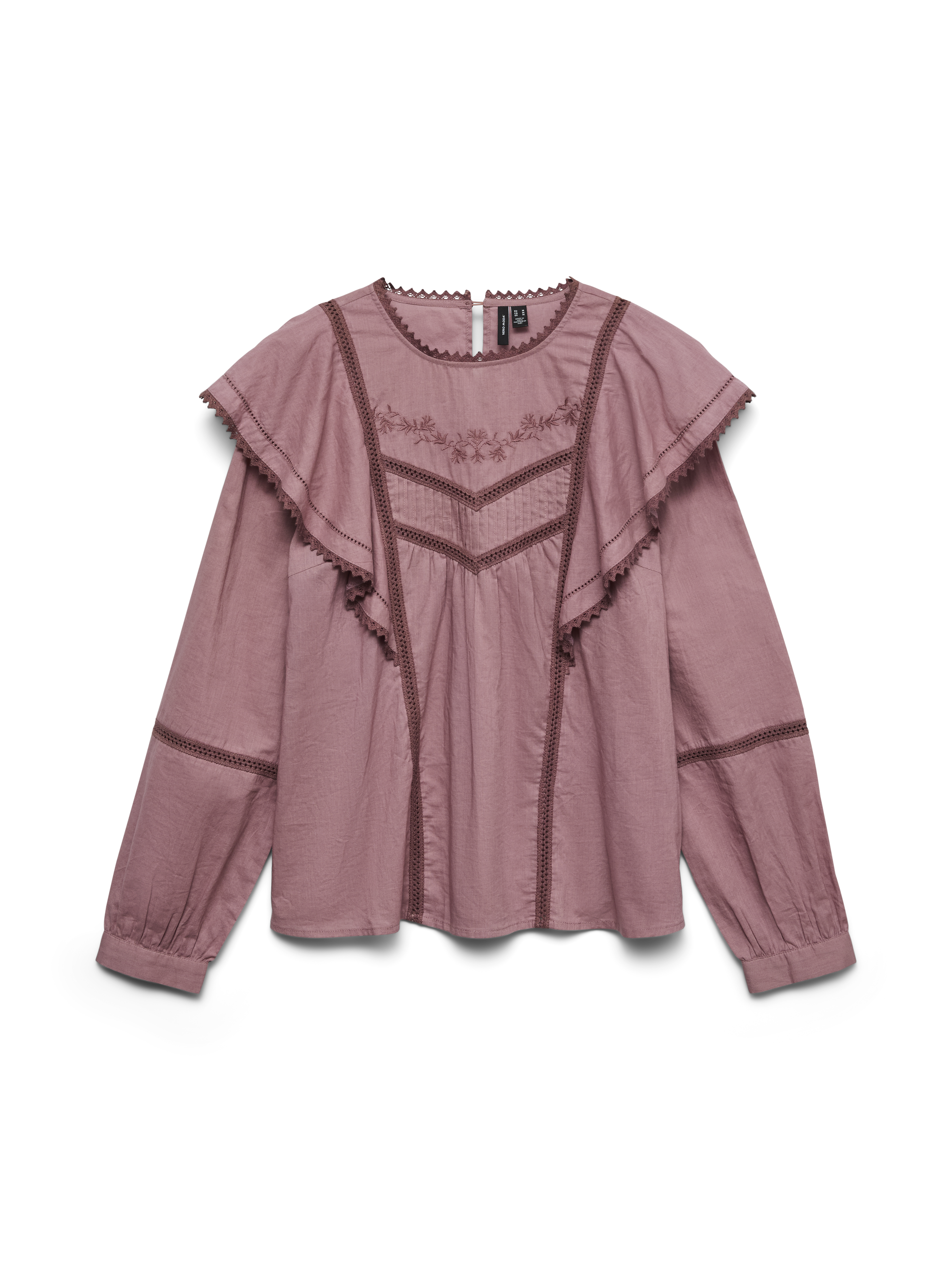 - Details : Bestickt, Vordere Passe, Spitzen-Detail, Rüschendetail