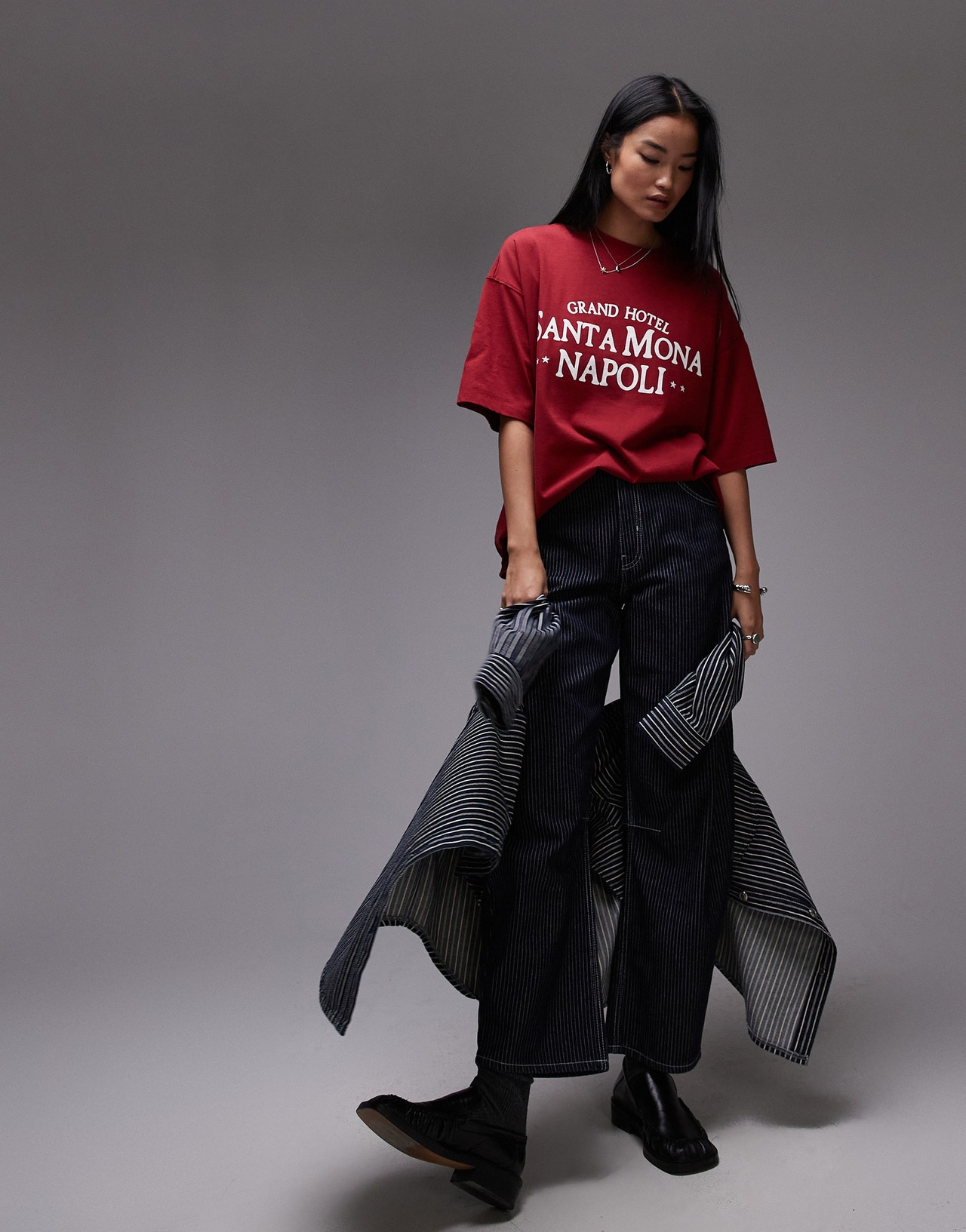Topshop graphic Santa Mona Napoli oversized tee in red - RED