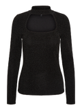 Glittery blouse with a cut out in the front. The blouse is made from a soft and stretchy material. Wear it with trousers and high heels for a trendy look.