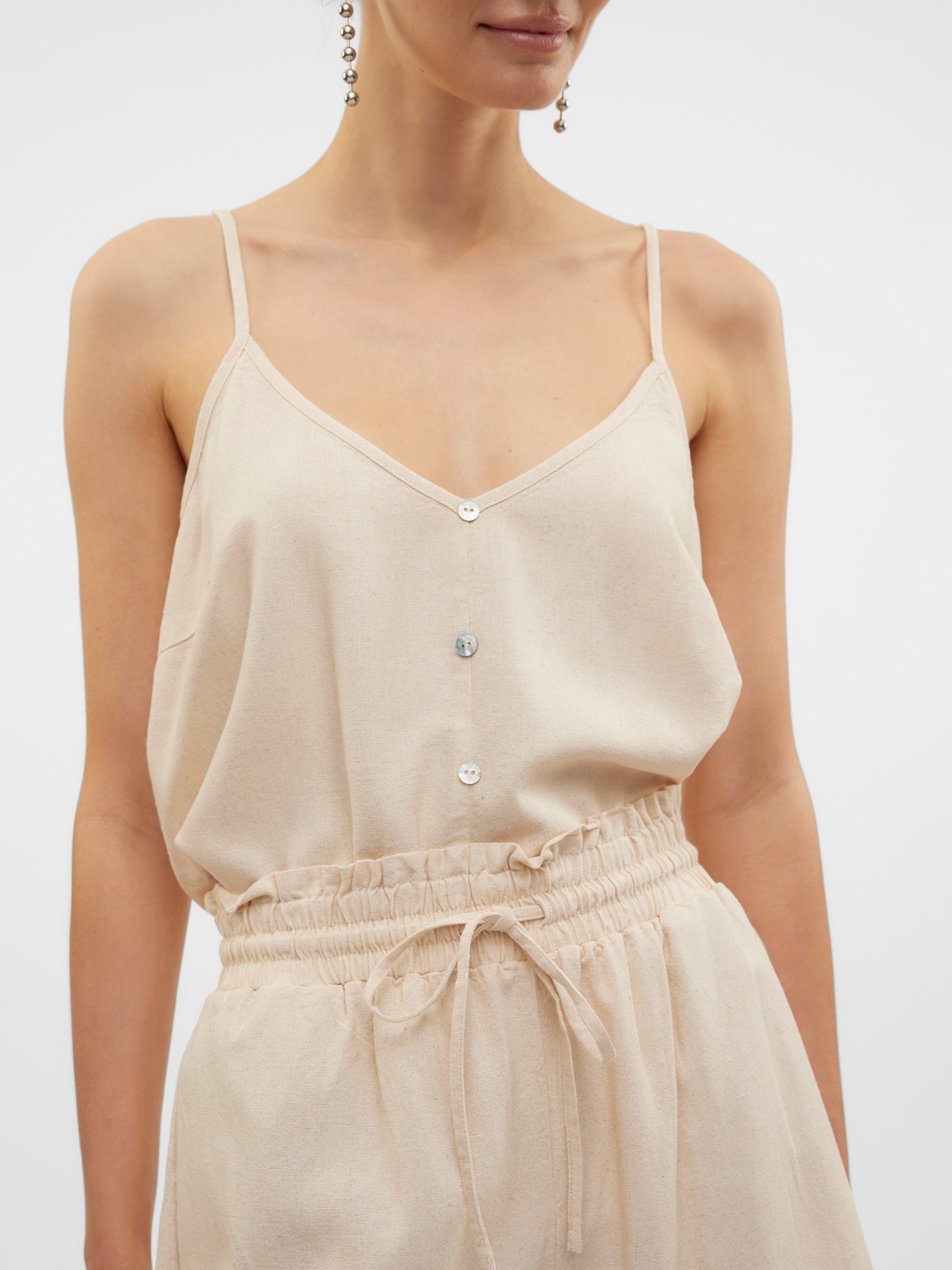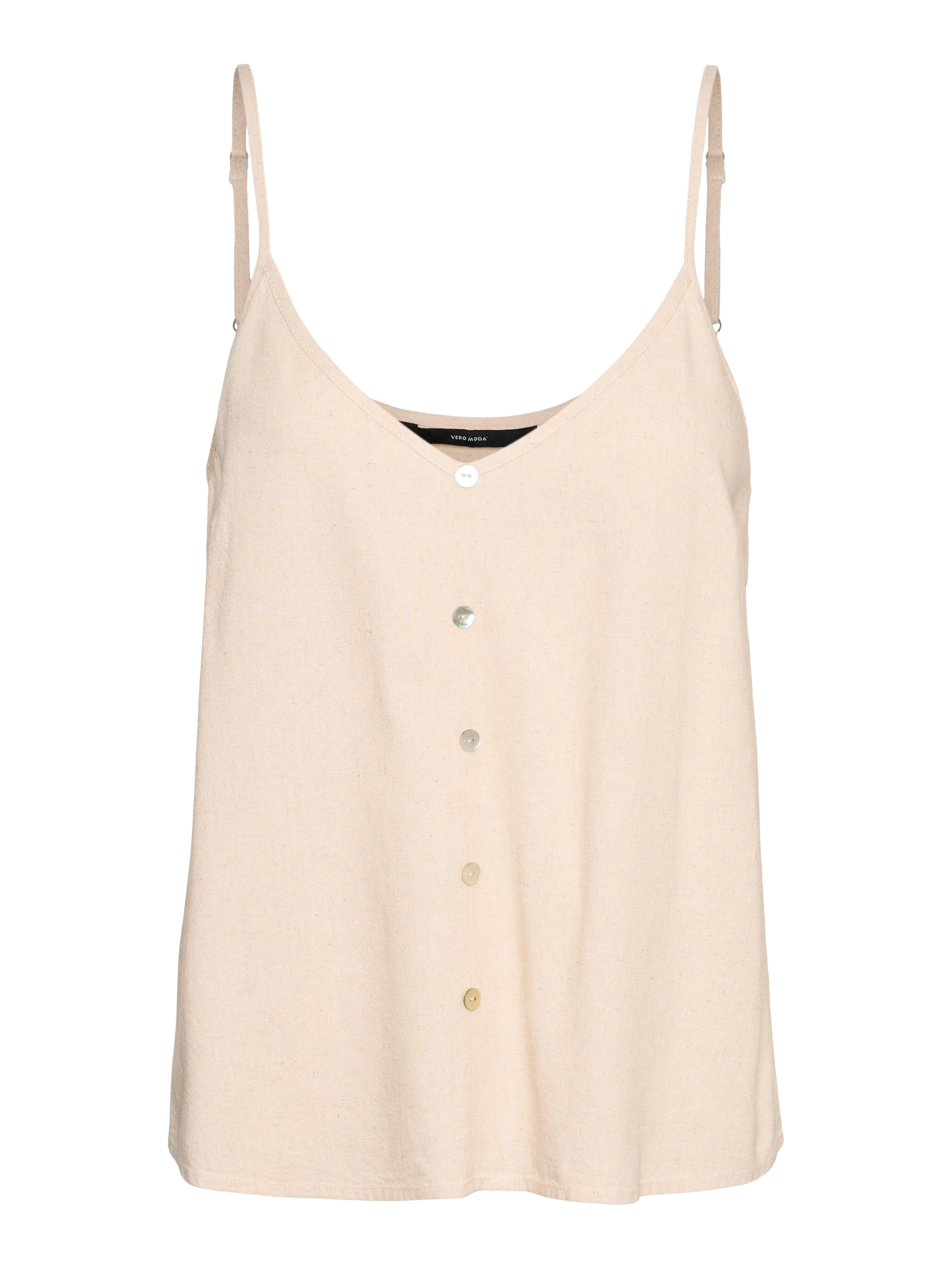 Du suchst ein neues Lieblingsoberteil für jeden Tag? Wir haben da eine Idee. Dieses Oberteil ist perfekt für Tage, an denen du keine Lust auf ein ausgefallenes Outfit hast, aber trotzdem einen trendigen Look willst. Du wirst es lieben! Jetzt fehlt nur noch etwas Schmuck für mehr Glitzer oder eine leichte Jacke, wenn du mehr Lust auf ein schlichtes Outfit hast. - Produkttyp : Top - Hals : V-Ausschnitt - Ärmel : Ohne Ärmel - Riemen : Verstellbare Träger - Details : Knopf-Details - Passform : Normal geschnitten