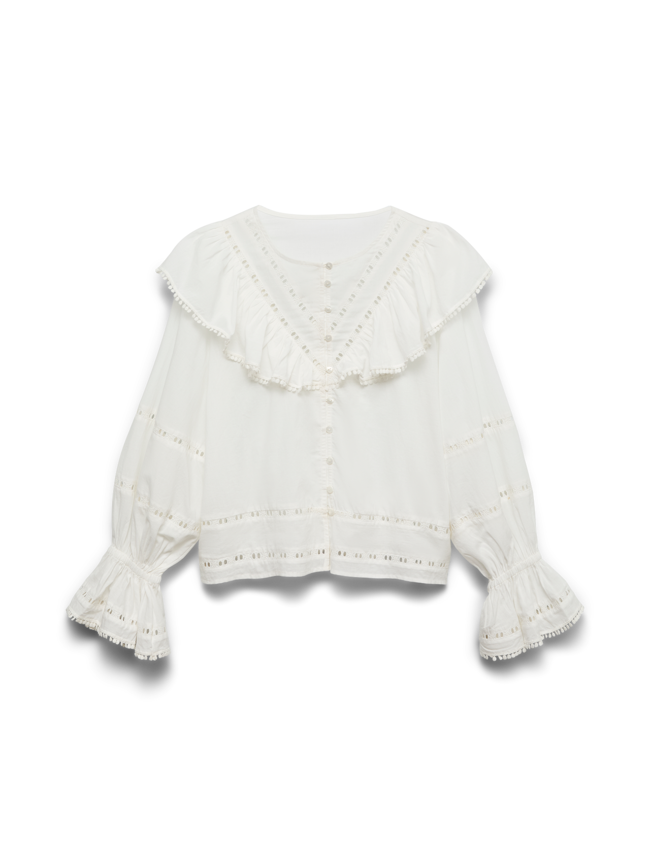 - Details : Rückenpasse, Lochstickerei-Detail, Vordere Passe, Rüschendetail