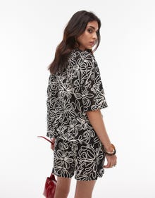 Topshop boxy floral applique top co-ord in mono print - BLACK