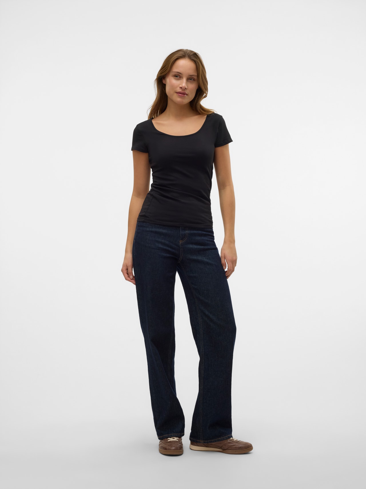 Im Zweifelsfall ein T-Shirt tragen! Mit einem T-Shirt können Sie nie etwas falsch machen - eine perfekte Wahl für einen coolen und zeitlosen Look. Tragen Sie dieses T-Shirt zu einer schönen Boyfriend-Jeans und fügen Sie ein Paar klobige Sneaker für einen urbanen City-Look hinzu.
